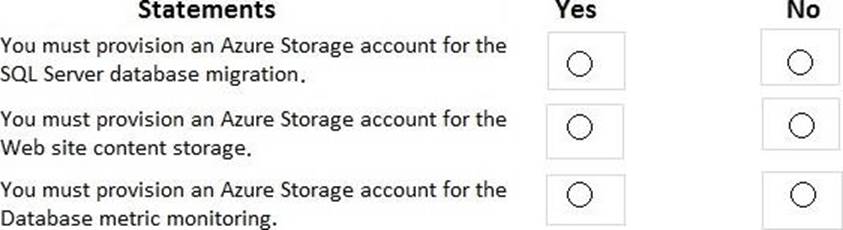 ✑ Once migrated to Azure, DB1 and DB2 must meet the following requirements: