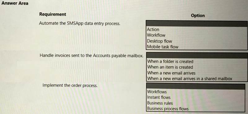 Each day the company receives an email that contains an attachment. The attachment lists orders from the company's rail transportation partners. You must create an automation solution that reads the contents of the email and writes records to the ERP system. The solution must pass credentials from a cloud flow to a desktop flow.
